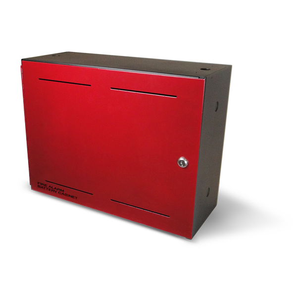 Battery Cabinet– Black backbox, Red Door. Supports up to 40AH batteries.