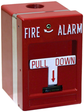 Manual pull station, weatherproof, Double-action, DPDT, Cat 45 Key reset, terminal connections.