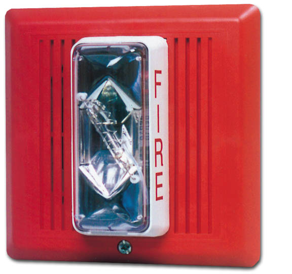 30 cd Temporal Horn/Strobe, Red. UL1971 Listed @ 30 cd, inchFIRE inch Wall Orientation